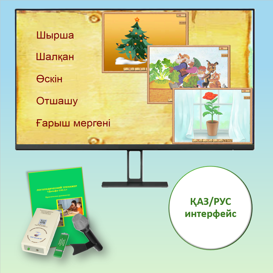 "Зерде" — модификация логопедического тренажера с интерфейсом на казахском и русском языках, язык легко менять. Работа над устной речью. Подходит для сенсорных экранов.Общее количество упражнений — 32