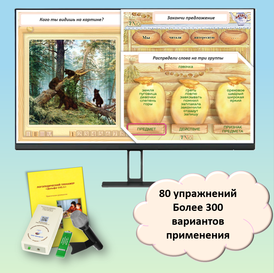Работа над устной и письменной речью. Включает озвученные упражнения для нечитающих детей. Подходит для сенсорных экранов.Общее количество упражнений — 67Общее количество словарей — 64